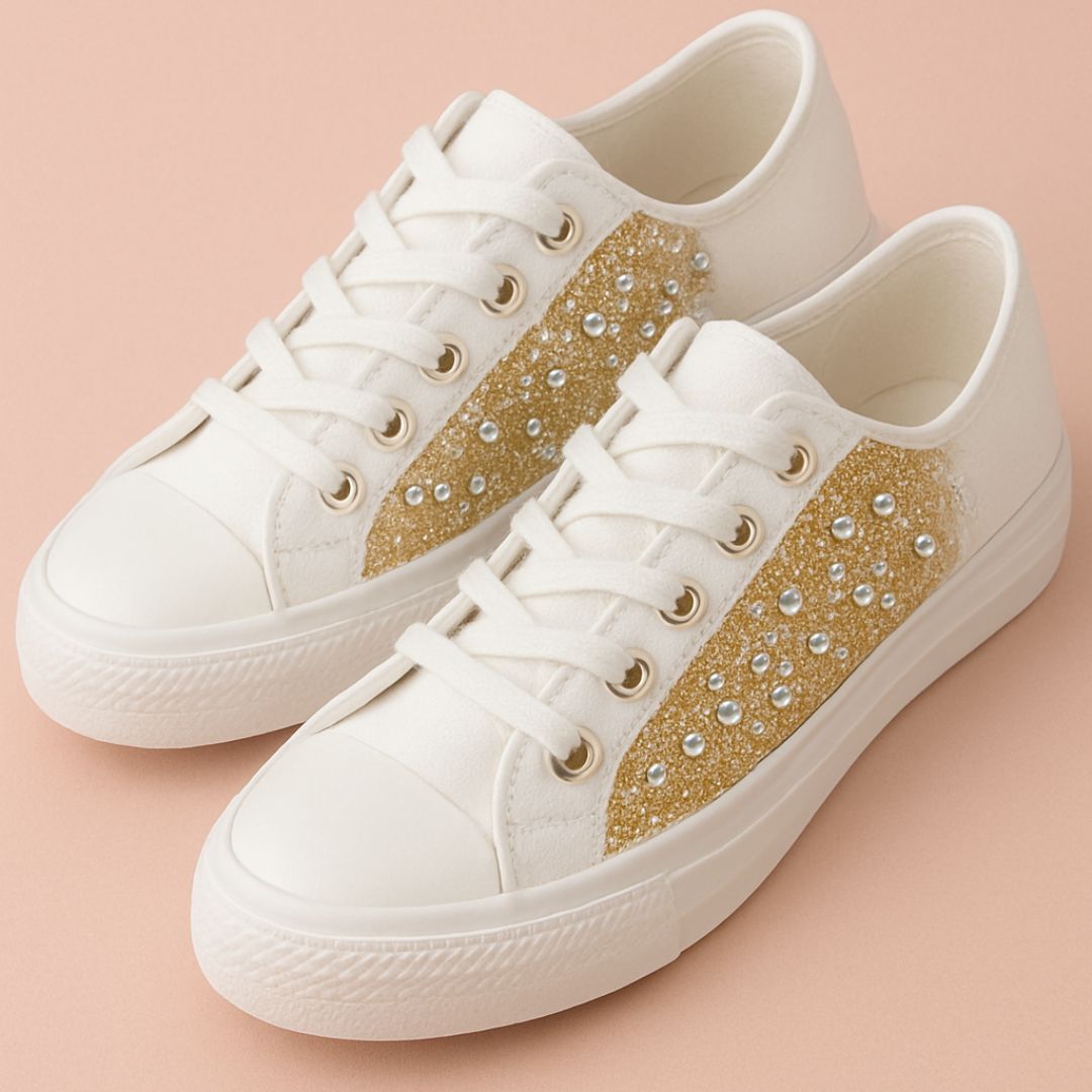 Hasilnya? Sepatu yang tadinya polos langsung berubah jadi masterpiece berkilau yang siap nemenin kamu ke mana aja — dari hangout santai sampai pesta akhir tahun.