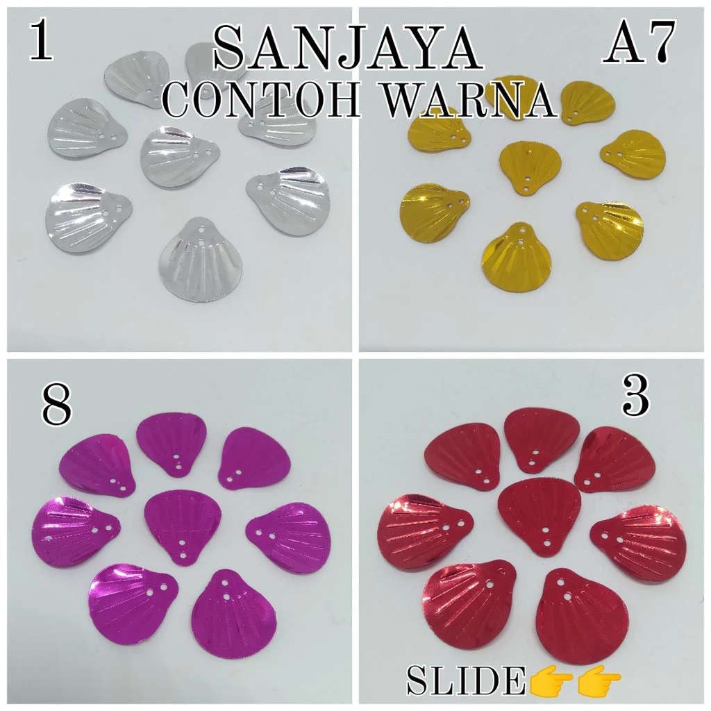 Menjadi salah satu produk jadi favorit karena bentuknya unik dan teksturnya mencerminkan cahaya alami dengan indah. Setiap potong payet ramboci memiliki kilau lembut yang bikin hasil dekorasi tampak elegan tapi tetap playful. Cocok banget untuk menghias bagian bahu jaket, saku, atau ujung lengan agar tampil lebih glamor. Selain itu, bahan payetnya ringan dan mudah menempel dengan lem craft Hasans, jadi kamu nggak perlu takut payet ramboci mudah lepas. Warna-warni pastel dan metaliknya juga membuat payet ramboci kerang Hasans jadi pilihan utama buat kamu yang ingin tampil beda tapi tetap stylish.