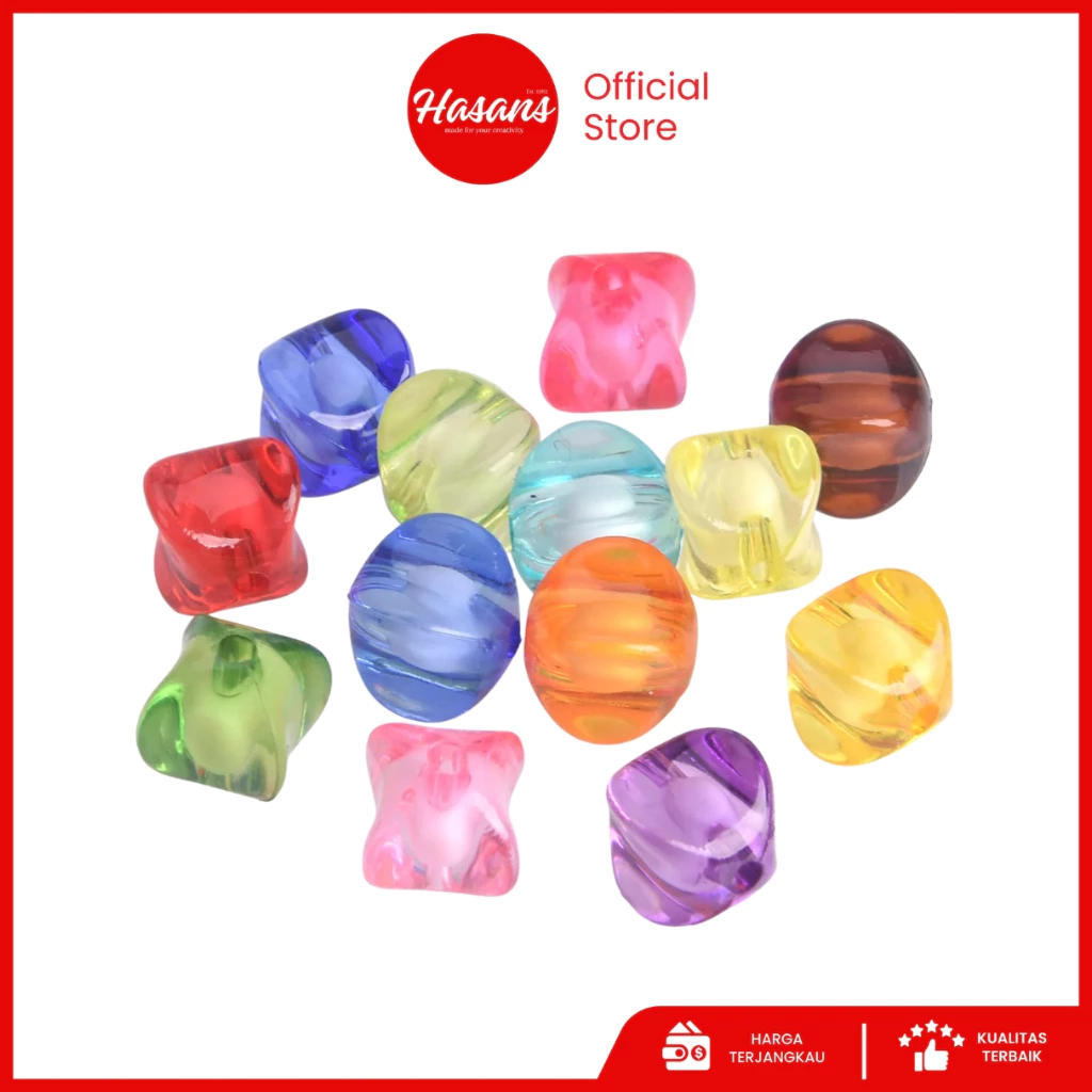 Bentuk lucu menyerupai buah belimbing di dalam manik ini digemari terutama untuk proyek anak-anak. Warna-warnanya cerah dan playful, sehingga cocok dipakai dalam gelang anak, kalung warna-warni, hingga gantungan tas kreatif. Karena bentuknya menggemaskan, manik belimbing sering dipilih sebagai media belajar DIY untuk anak-anak, melatih kreativitas sekaligus motorik halus. Banyak crafter juga memanfaatkannya untuk membuat aksesoris remaja dengan nuansa fun. Sifatnya ringan dan tahan lama membuatnya aman digunakan dalam berbagai kreasi sehari-hari.