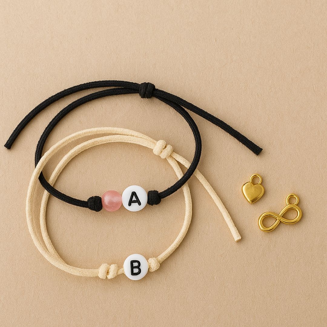 Satu huruf bisa membawa banyak kenangan. Karena itu, manik huruf sering jadi favorit untuk aksesoris couple. Kamu bisa merangkai inisial nama, tanggal jadian, atau kata spesial yang hanya kalian berdua tahu.
