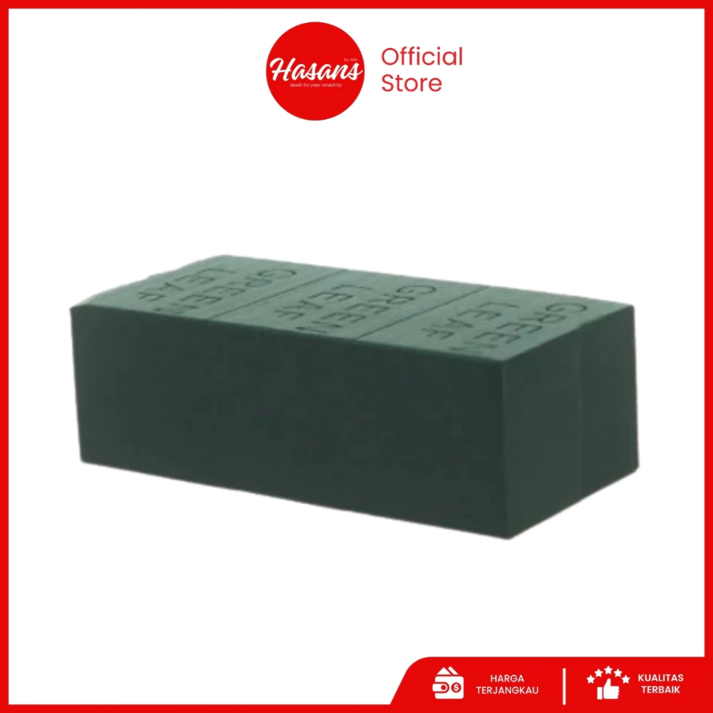 Sebagai dasar rangkaian, gabus busa Hasans memiliki tekstur padat namun ringan. Mudah dipotong dan menahan tangkai bunga tetap stabil di vas. Produk ini memastikan dekorasi tetap kokoh dan tidak berubah posisi meski sering dipindahkan.